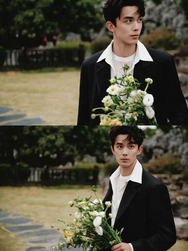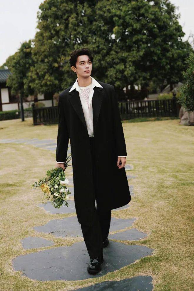 当他手捧一束清新的白绿花束站在天光里,眉眼清俊,唇角带笑,少年人的温柔与鲜活扑面而来,瞬间消解了黑大衣自带的距离感,让矜贵的型格里,多了几分治愈的烟火气;而当他抬眼直面镜头,眼神里的锐利与笃定,又藏不住愈发成熟的锋芒;倚靠廊柱静坐时,松弛的姿态里,是游刃有余的自在与从容。从荧幕上深入人心的角色,到红毯与活动里一次次让人眼前一亮的亮相,吴磊的成长,从来都藏在每一次的呈现里。他既能驾驭古装里意气风发的少年将军,也能在现代造型里,把成熟绅士的矜贵与阳光少年的鲜活,拿捏得浑然天成。